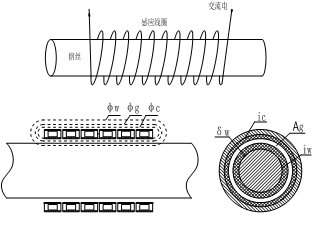 1.感應(yīng)加熱的基本原理是當(dāng)加熱材料(即工件)置于通有交流電流的線圈內(nèi),由于交變磁場的作用工件內(nèi)部會產(chǎn)生感應(yīng)電勢,在感生電勢的作用下工件內(nèi)會產(chǎn)生渦流,依靠這些渦流的能量達(dá)到加熱目的,如圖所示.